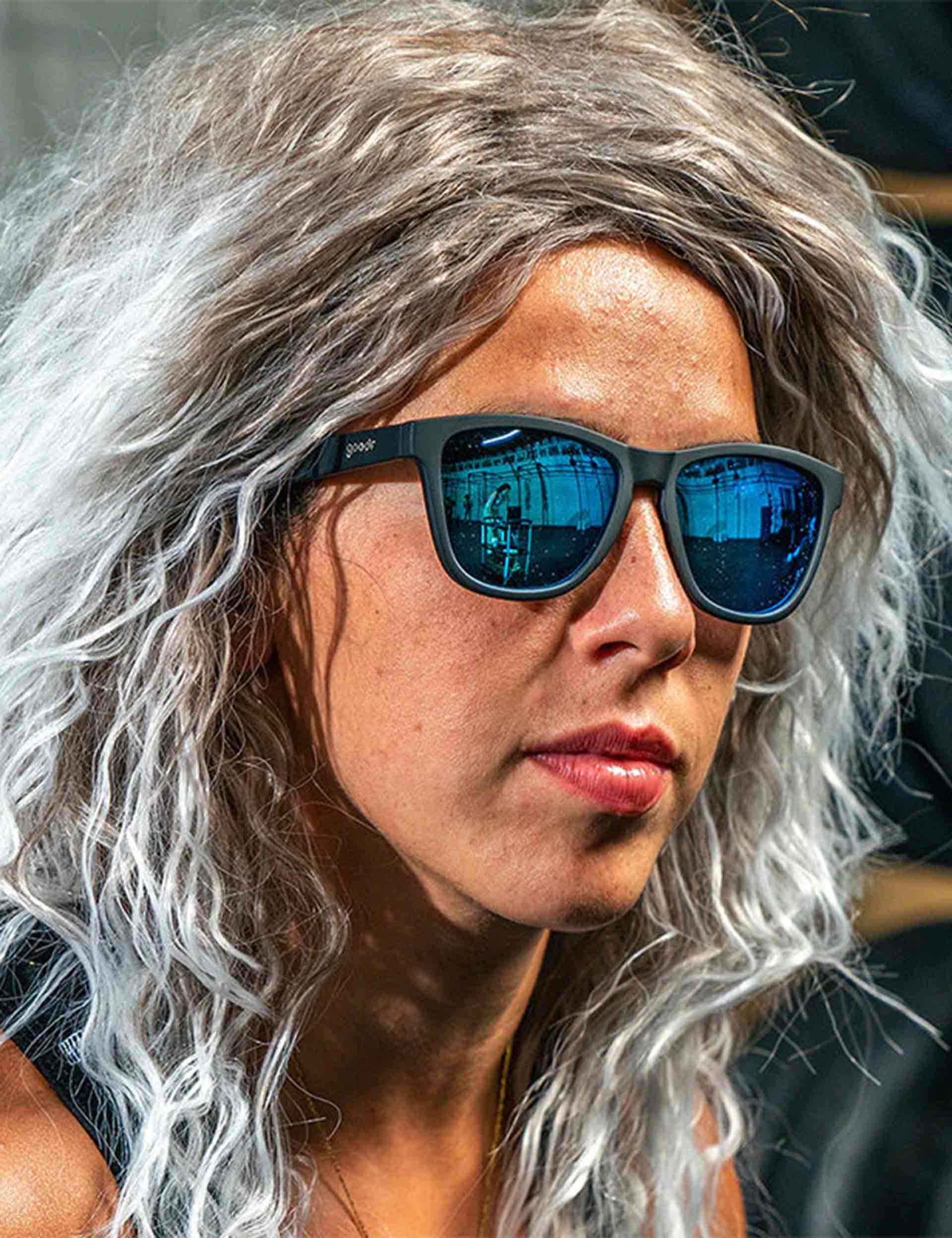 The Goodr Mick And Keith's Midnight Ramble black and blue sunglasses offer the best of both worlds: sleek black frames with a pop of color. A special grip coating prevents slipping and bouncing, making them ideal for running, golfing, frolfing, cartwheeling, and other sweaty activities. The ultimate duo: business in the frame, party in the lens.
