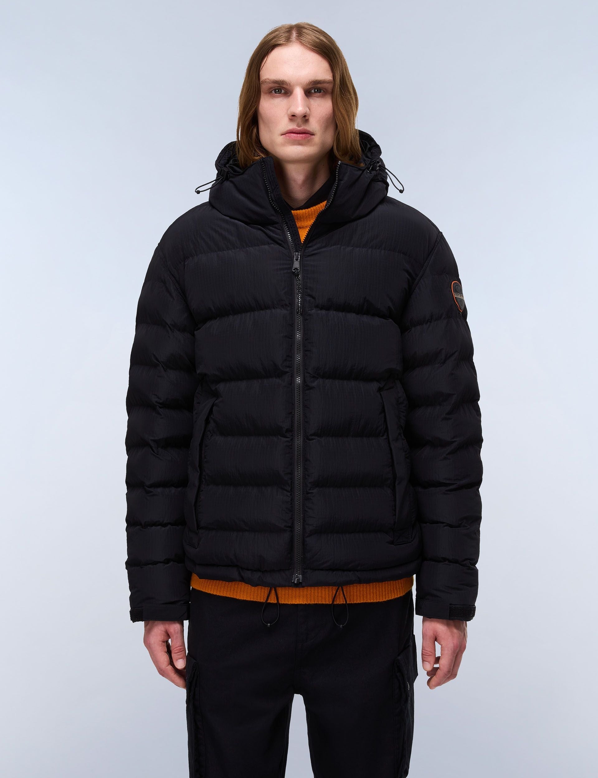 Brave the elements in the Terez Puffer Jacket - Black, a nod to Napapijri's outdoor heritage. Packed with down-free Thermo-Fibre insulation and crafted from water-resistant ripstop fabric, it's designed to keep you warm and dry. An adjustable hood, cuffs, and hem allow for a personalised fit, ensuring maximum protection from the cold.