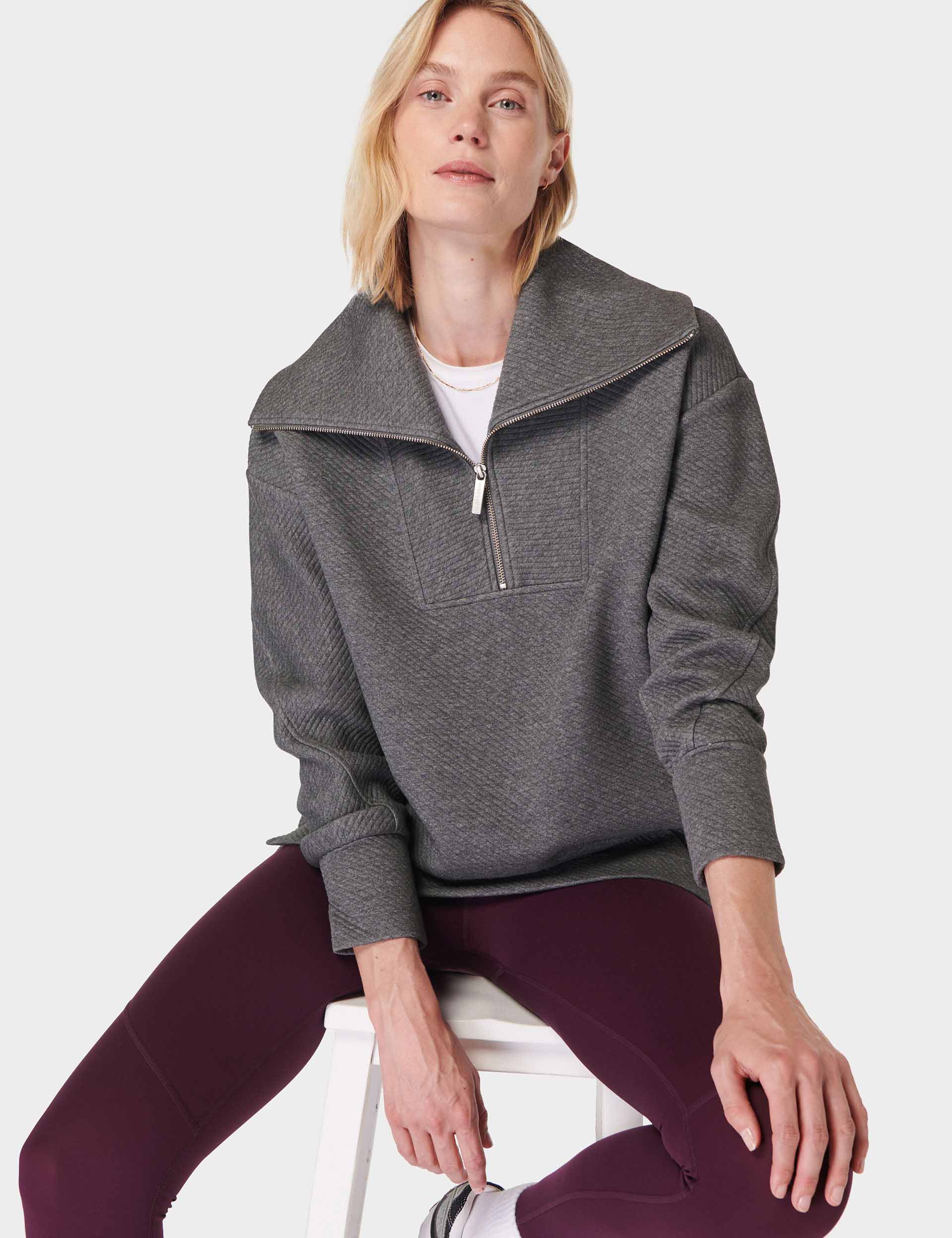 From laid-back mornings to post-workout errands, the Radiant Half Zip Sweatshirt brings warmth with a touch of cool. With a wide collar and boxy fit, it’s your ultimate layer for wherever the day goes.