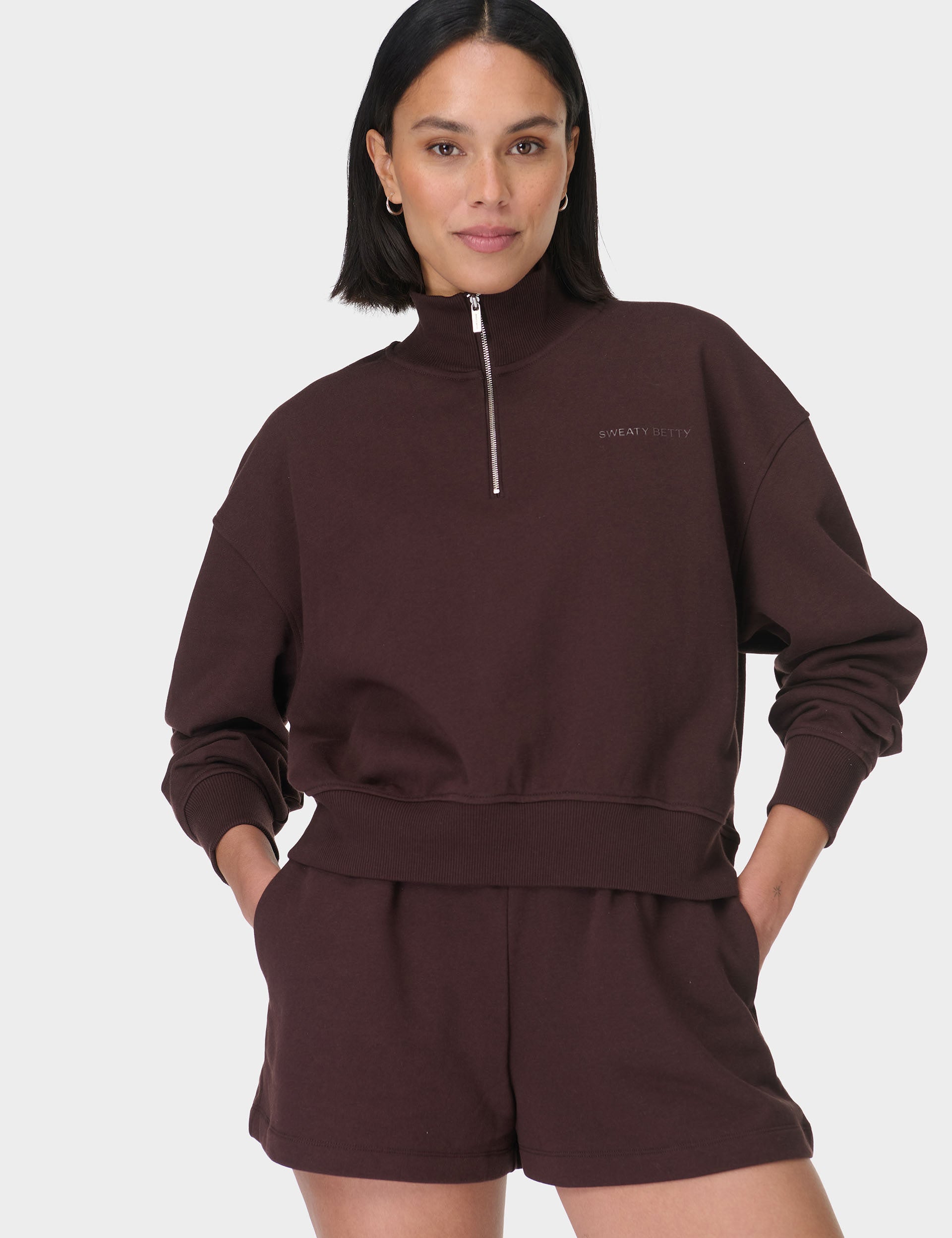 Elevate days off with the Revive Crop Half Zip, a fresh take on the classic sweatshirt. The soft, breathable cotton blend and dropped shoulder design create a relaxed, cropped silhouette, while the ribbed details and branded zip take any laid-back outfit to the next level, perfect for layering or wearing solo.