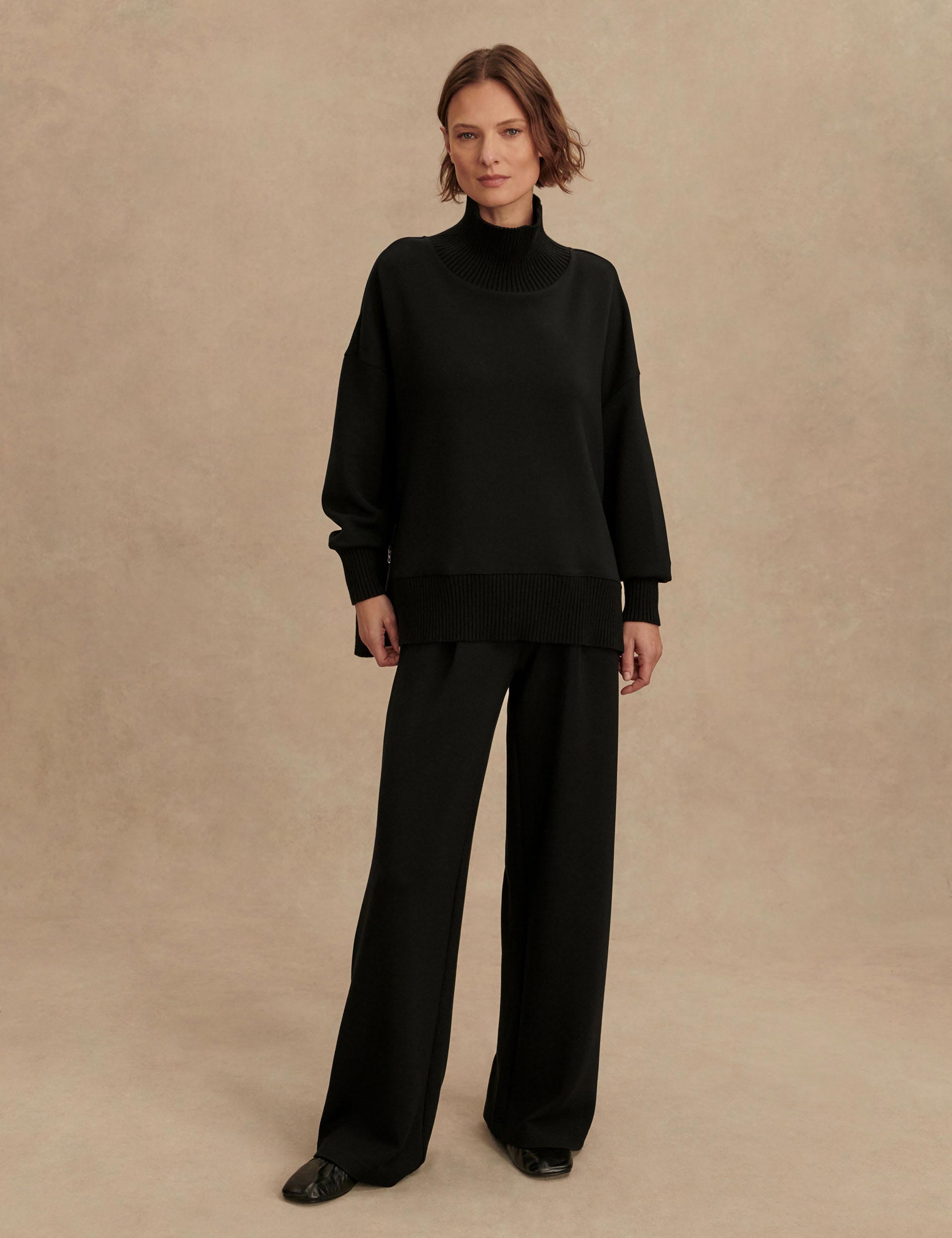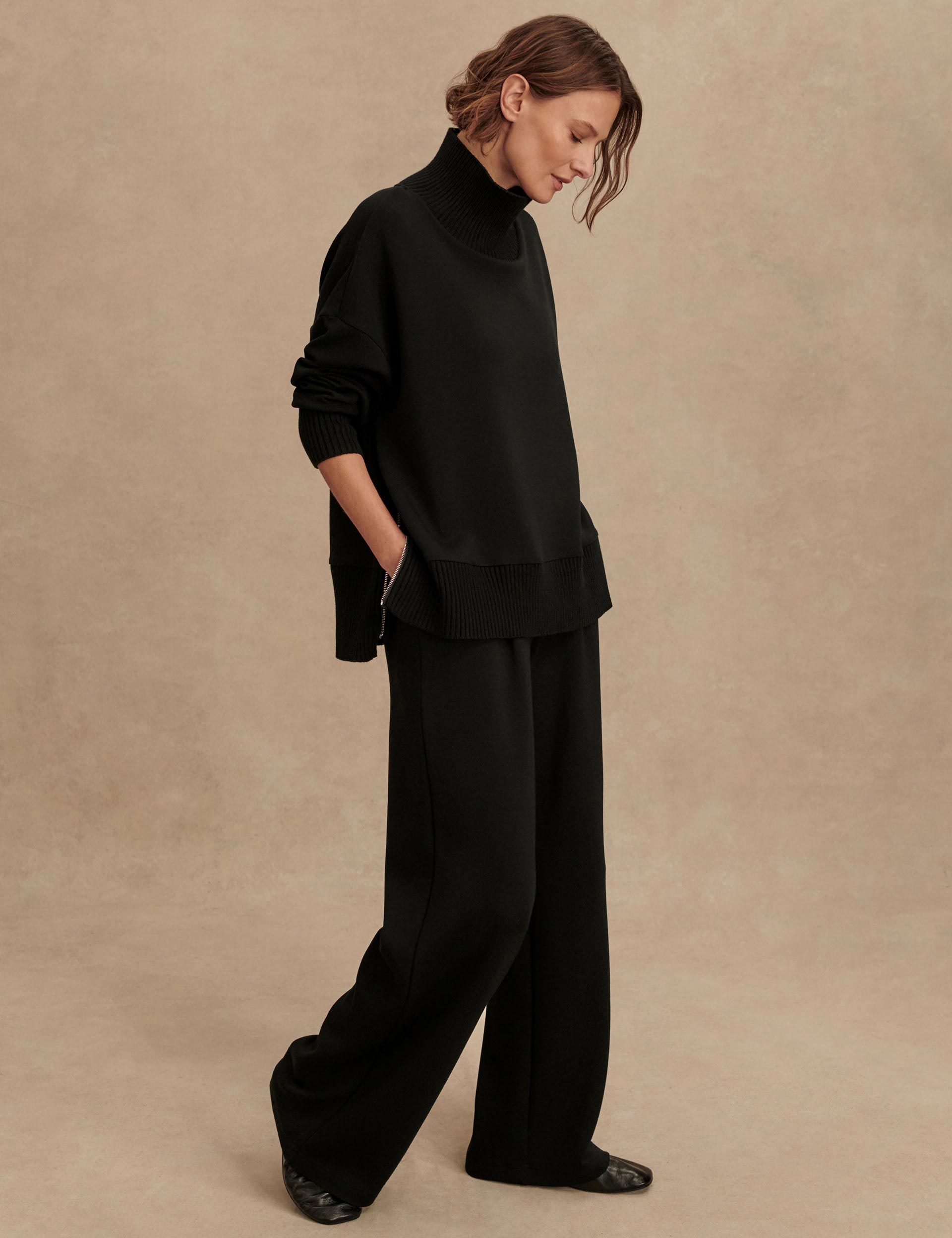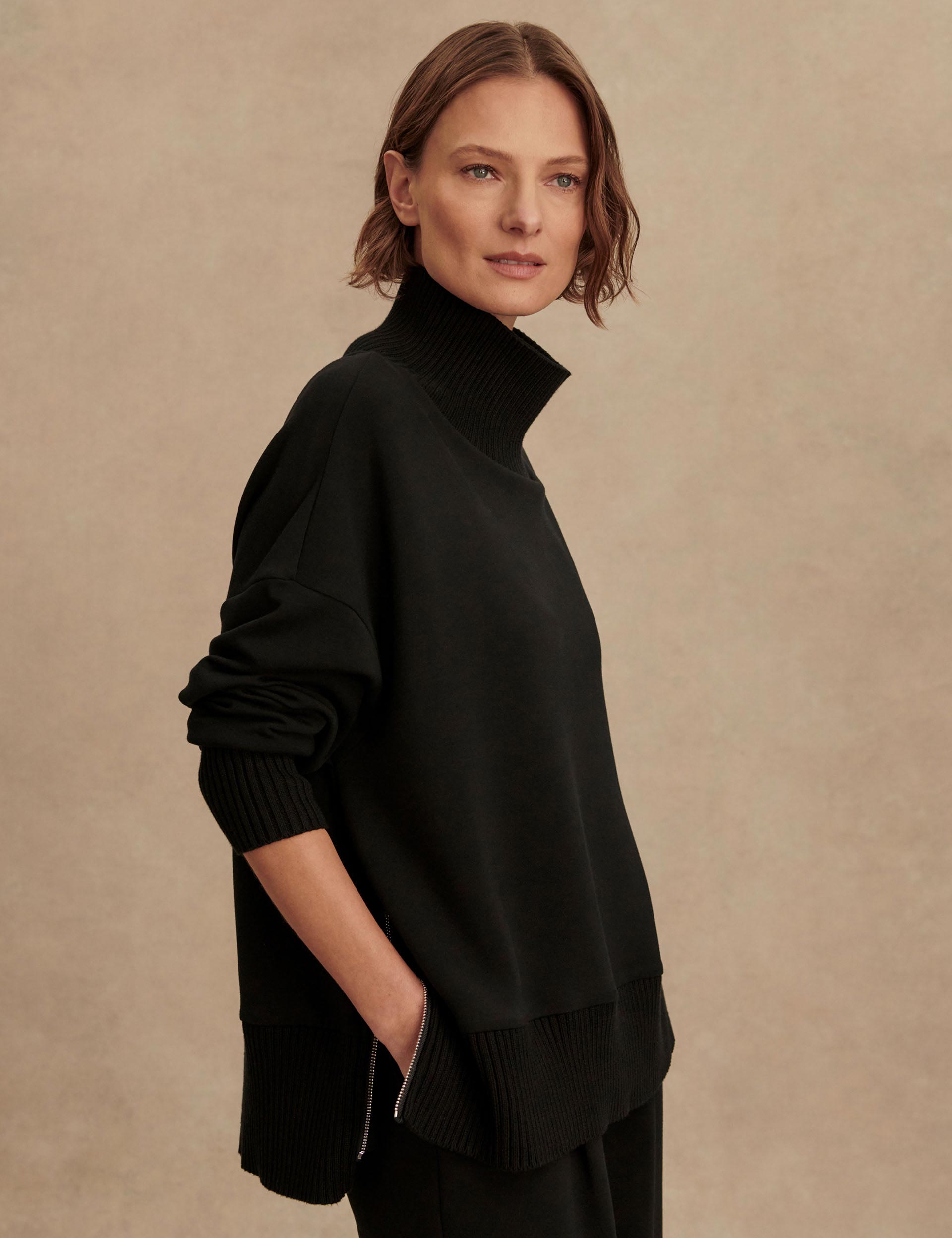 The Barker High-Neck Sweat is a cosy, oversized option perfect for rest days. The signature DoubleSoft fabric and high-neck design deliver warmth on chilly evenings. Deep side splits the knitted cuffs and hem ensure a relaxed yet secure fit, while dropped shoulders enhance the laid-back, sporty vibe.